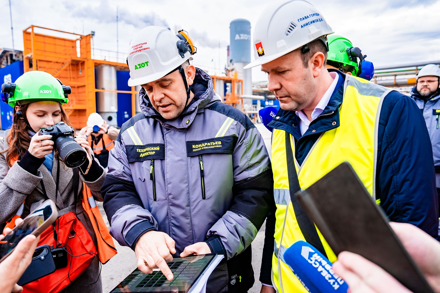КАО «Азот» (входит в ГК «Азот») посетили глава города Дмитрий Анисимов, представители администрации города и СМИ. Основная повестка встречи – конкретные мероприятия, проводимые предприятием в период НМУ, и природоохранные проекты предприятия.
